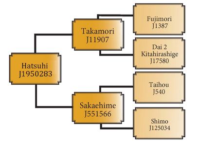 Sire Stack: G113 x JNR x Westholme Hiramichi Tsuru x Shikikan x 003 x 002 x Hatsuhi
