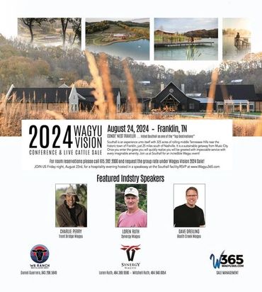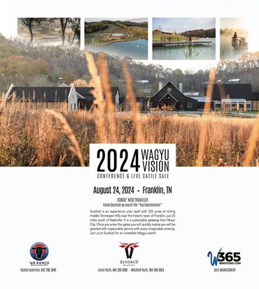 Mark your calendars and join us in Franklin, TN August 23rd and24th for the 2024 WAGYU VISION Conference & Live Cattle Sale!